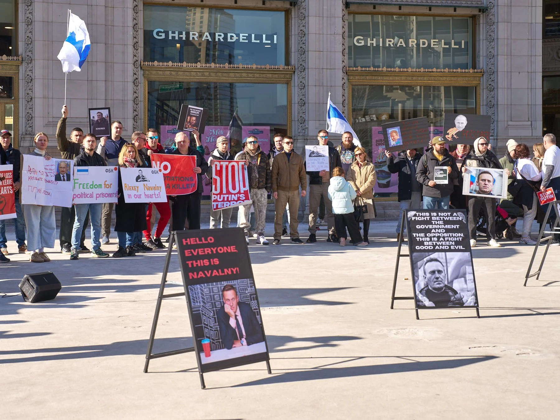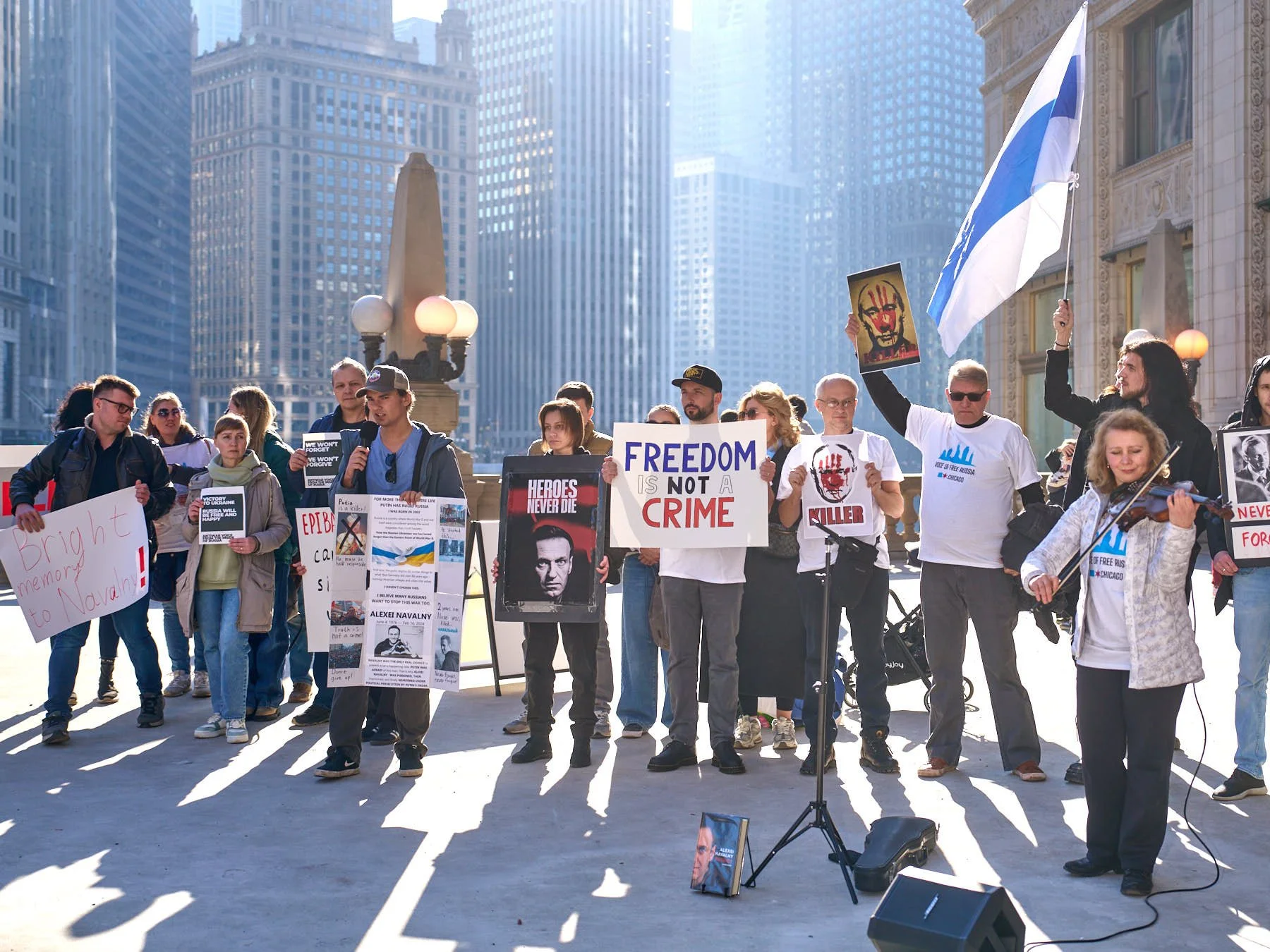 I remember that cold Friday in 2024 all too well. Given the time differences, members of Chicago Russian community had time to organize an evening memorial service for Navalny in the plaza adjacent to the Wrigley Building. It was one of the more solemn demonstrations I have attended, filled with tears and candle light. A year later, many of those same people returned to the Wrigley Building plaza to the commemorate the first anniversary of Navalny’s murder.