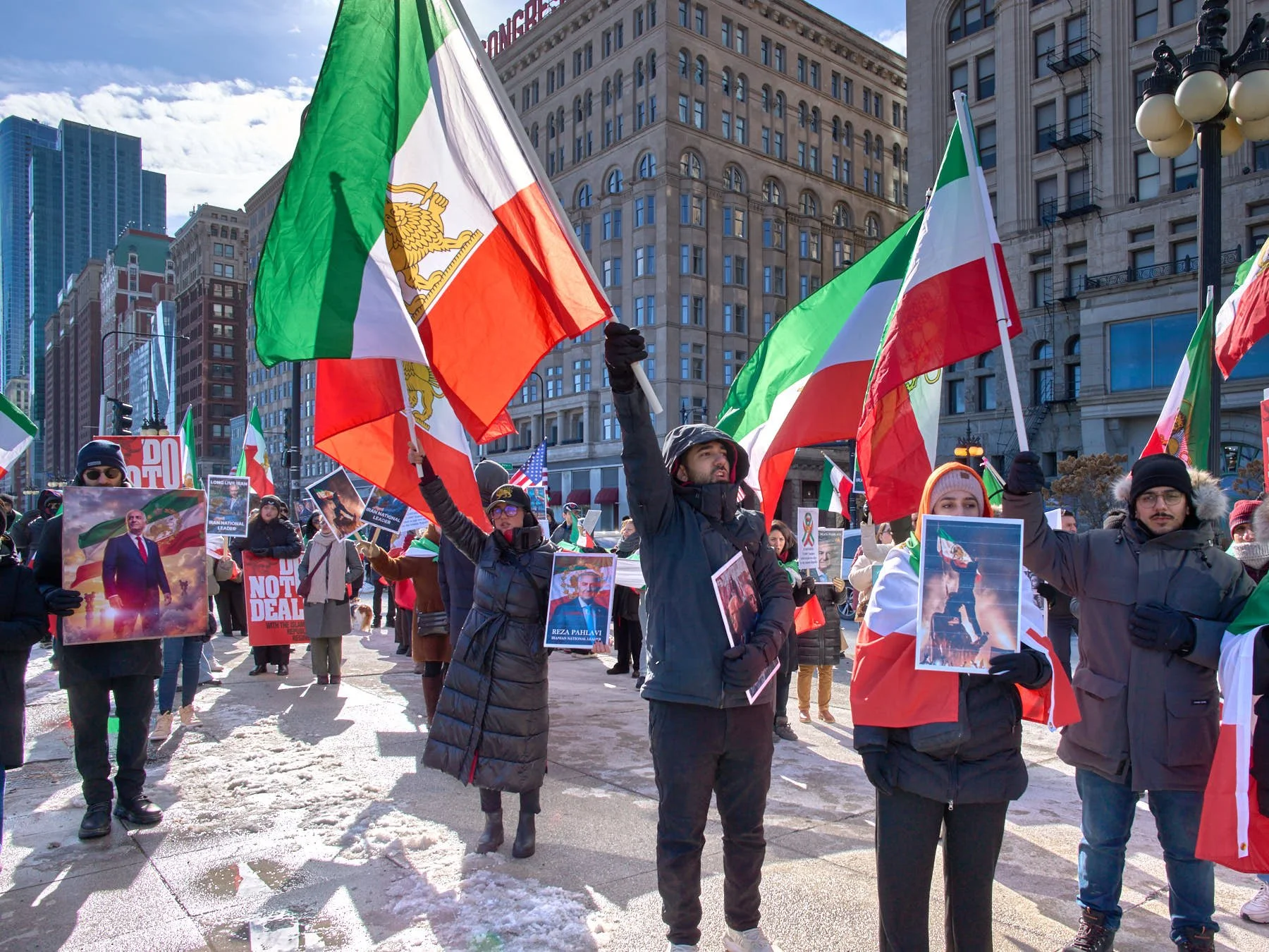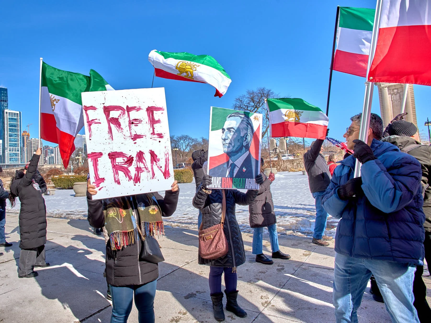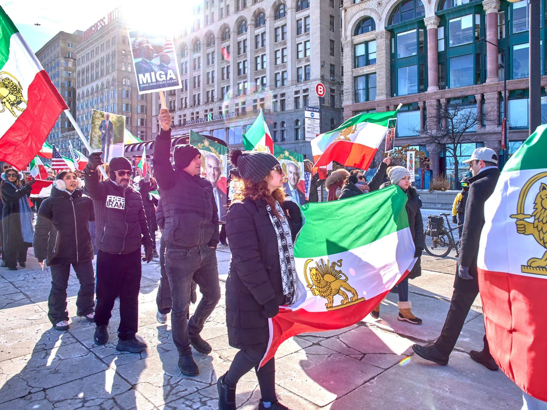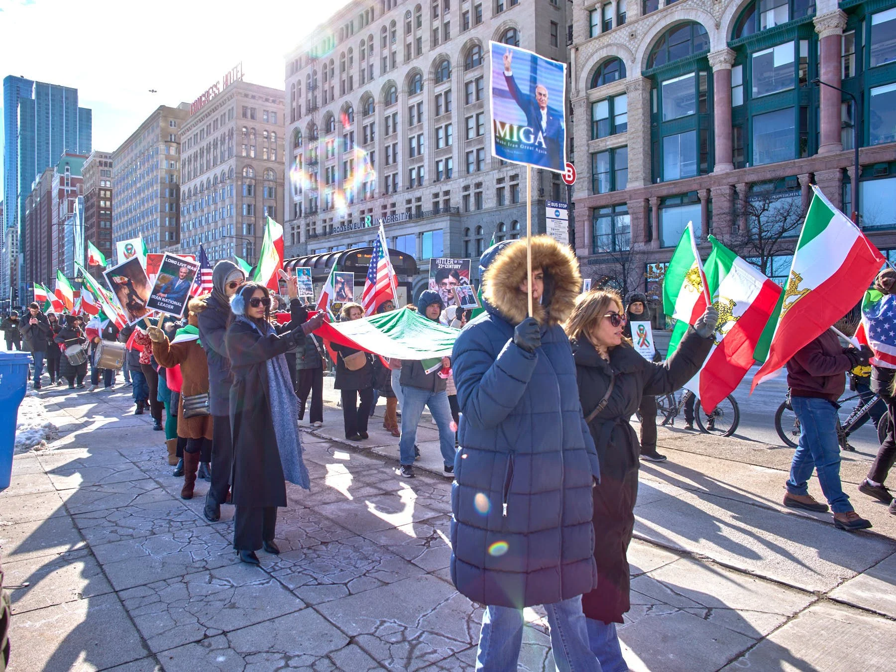 While Chicago’s Iranian community is a relatively small one—numbering somewhere between 6,000 and 10,000 in the city and 30,000 in the MSA)—the Iranians who turned out for the demonstration in Congress Plaza outnumbered those who gathered in Daley Plaza, reflecting the Iranians’ fervor for regime change. A choice had to be made between the Iranians and the anti-Trump forces. I opted for the Iranians simply because their demonstrations tend to be far more colorful.