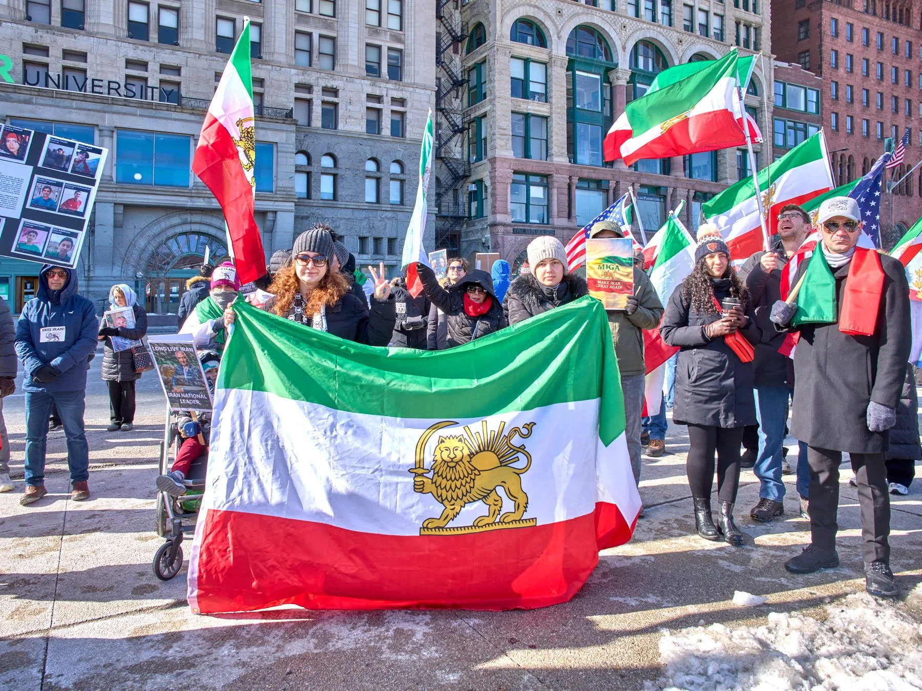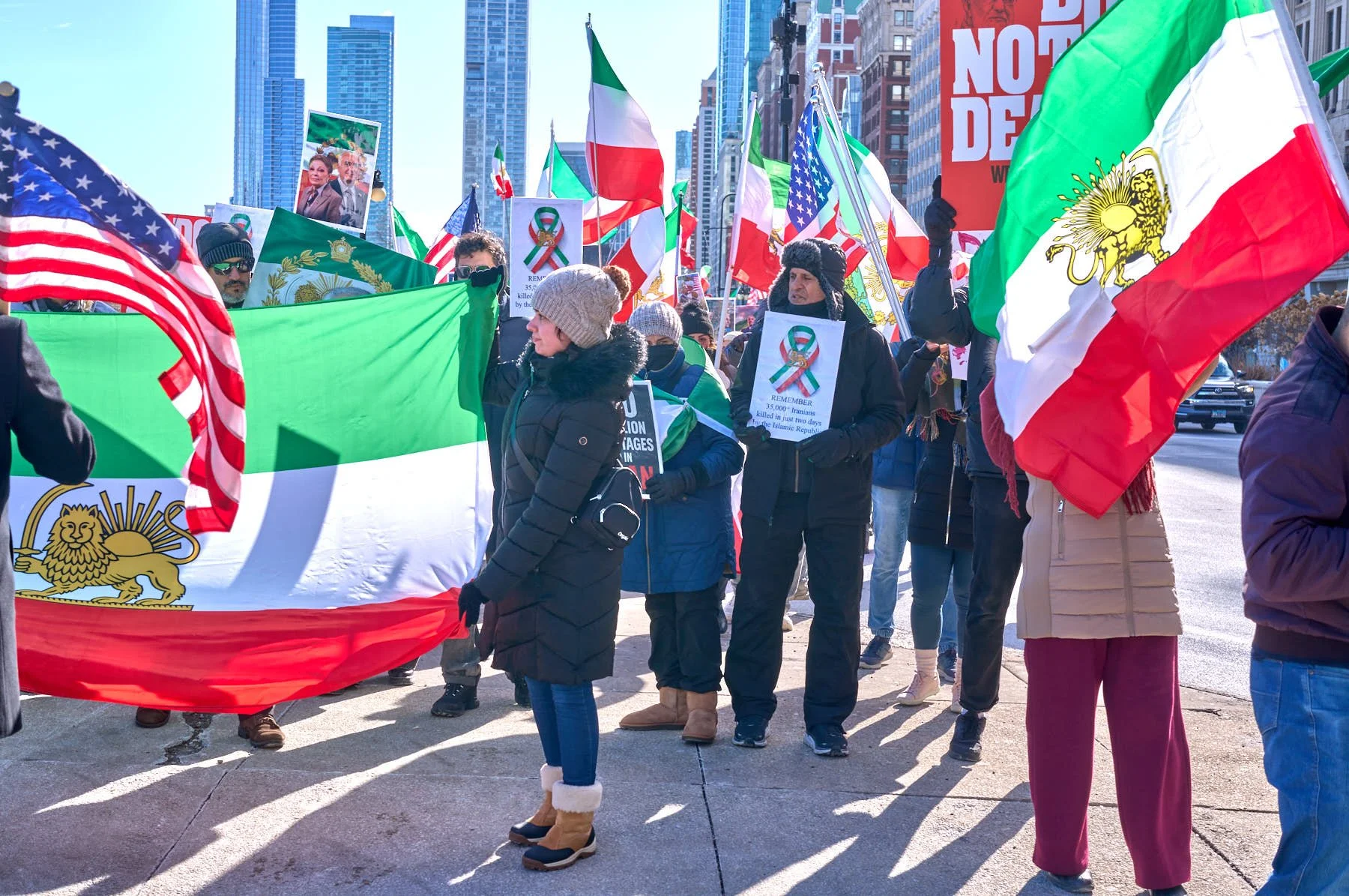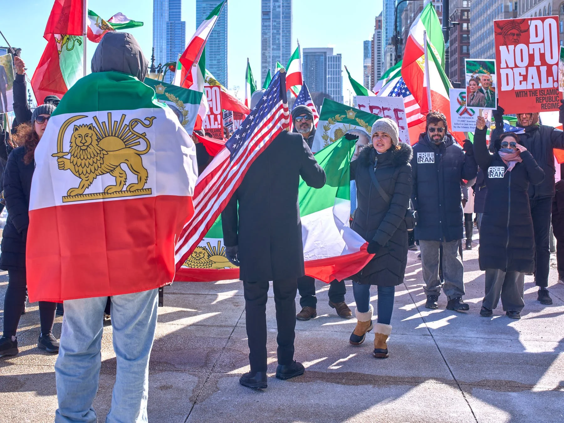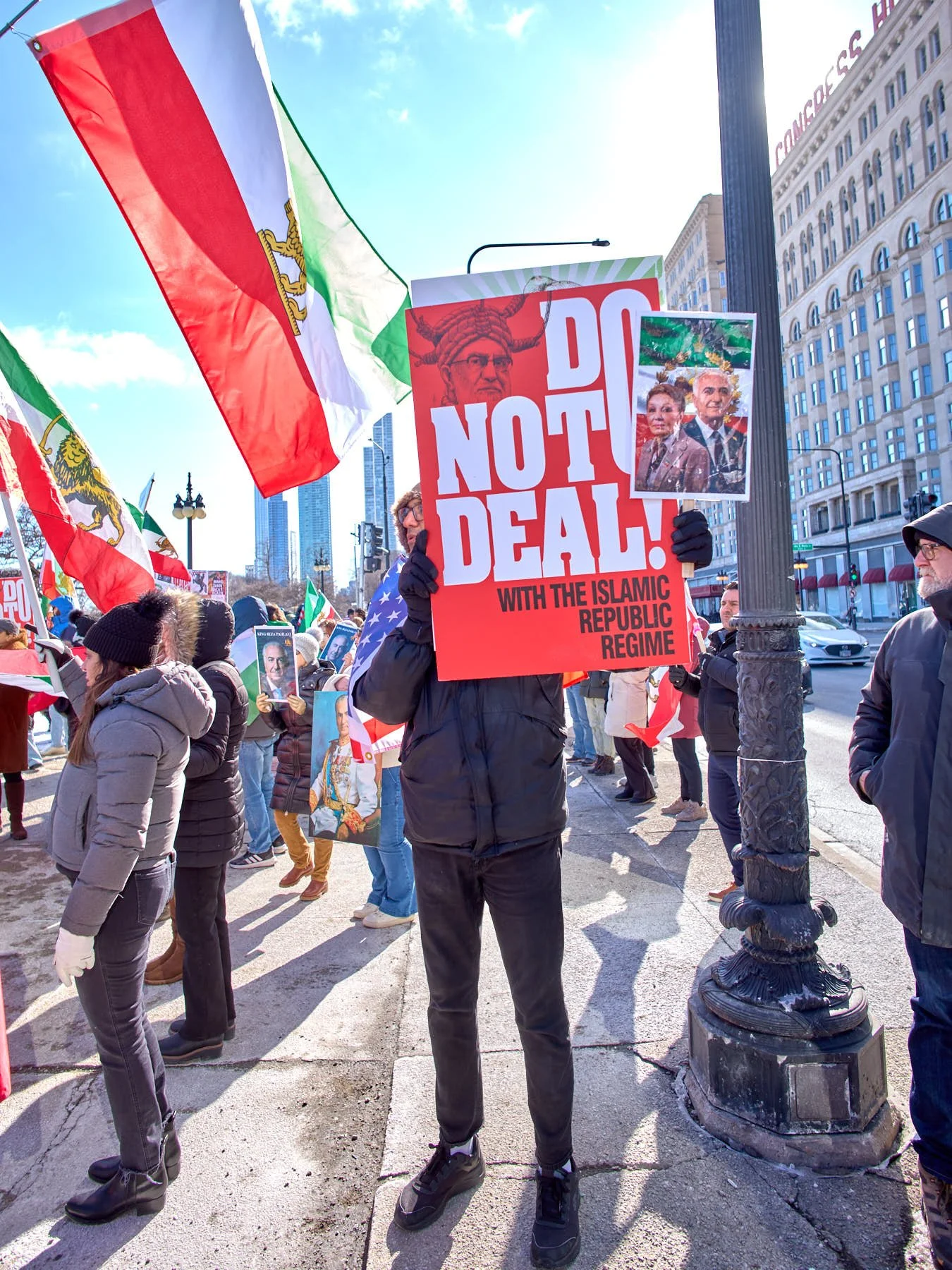 While Chicago’s Iranian community is a relatively small one—numbering somewhere between 6,000 and 10,000 in the city and 30,000 in the MSA)—the Iranians who turned out for the demonstration in Congress Plaza outnumbered those who gathered in Daley Plaza, reflecting the Iranians’ fervor for regime change. A choice had to be made between the Iranians and the anti-Trump forces. I opted for the Iranians simply because their demonstrations tend to be far more colorful.