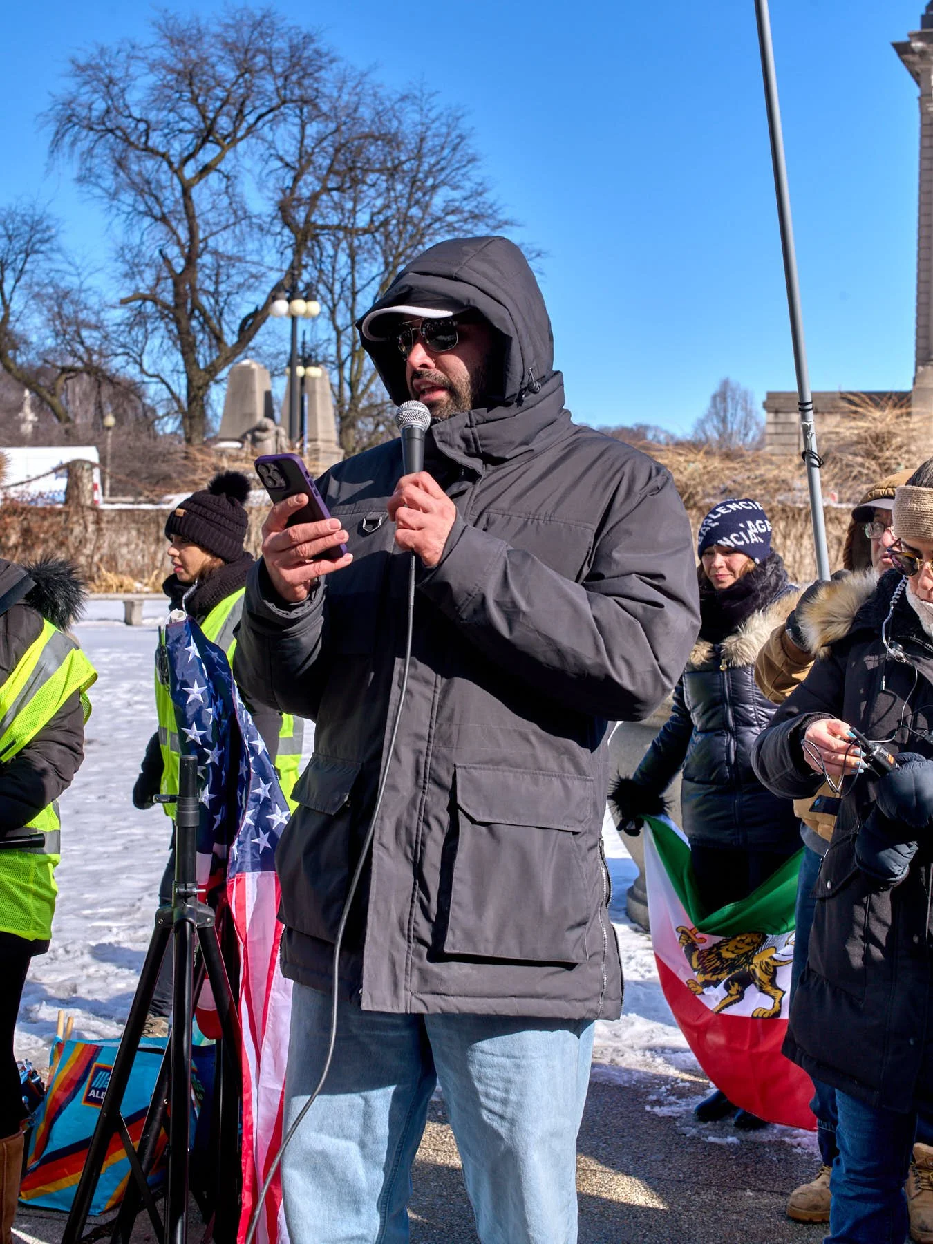 Chicago’s Iranian community once again took to Chicago’s streets today for another demonstration calling for regime change in Iran. Simultaneously, another group of demonstrators gathered in Daley Plaza, demanding that U.S. Immigration Control and Enforcement (“ICE”) vacate of Chicago (and Broadview). Like the Iranians, those gathered in Daley Plaza were also calling for regime change—or at least hoping for it.
