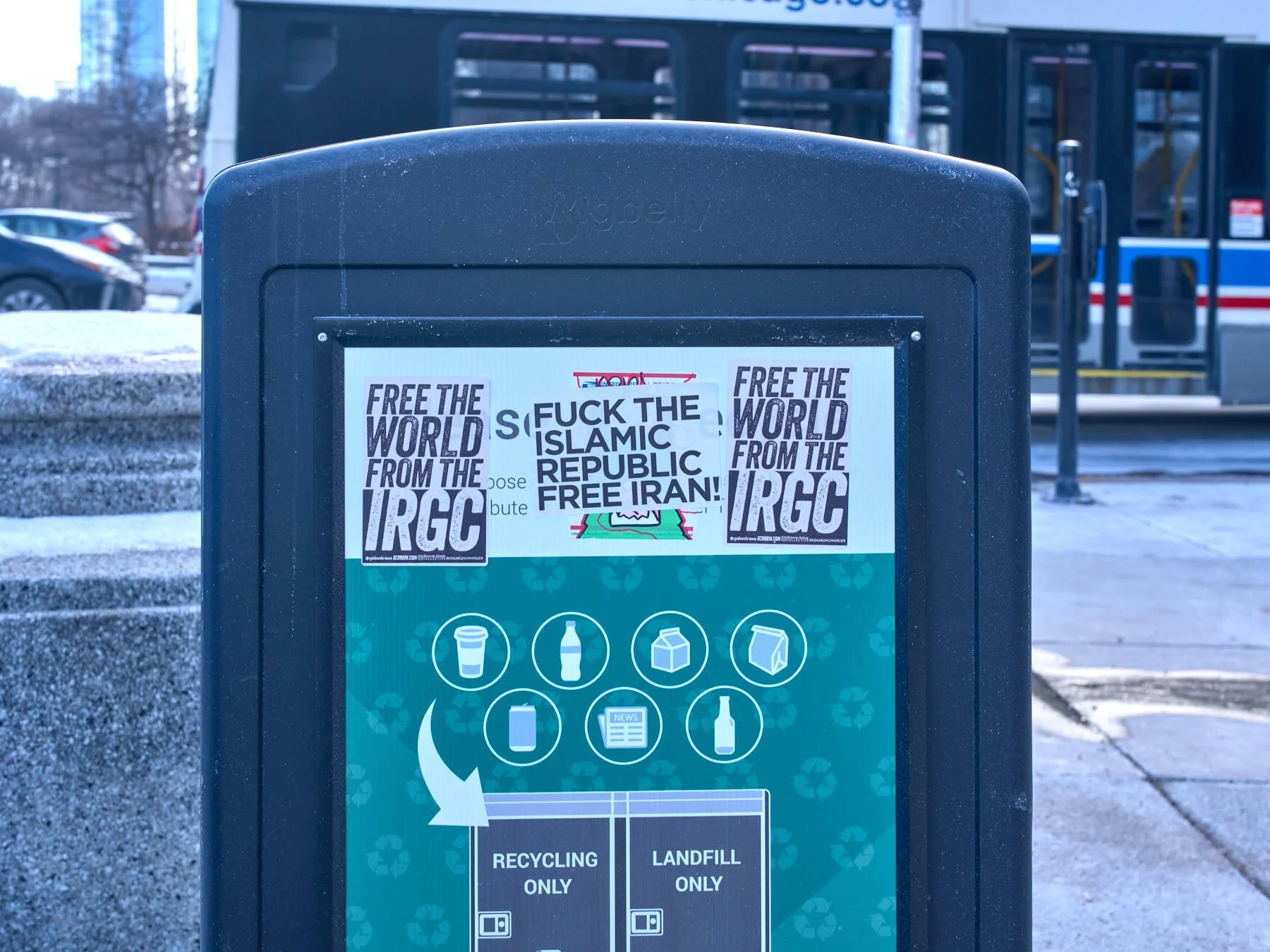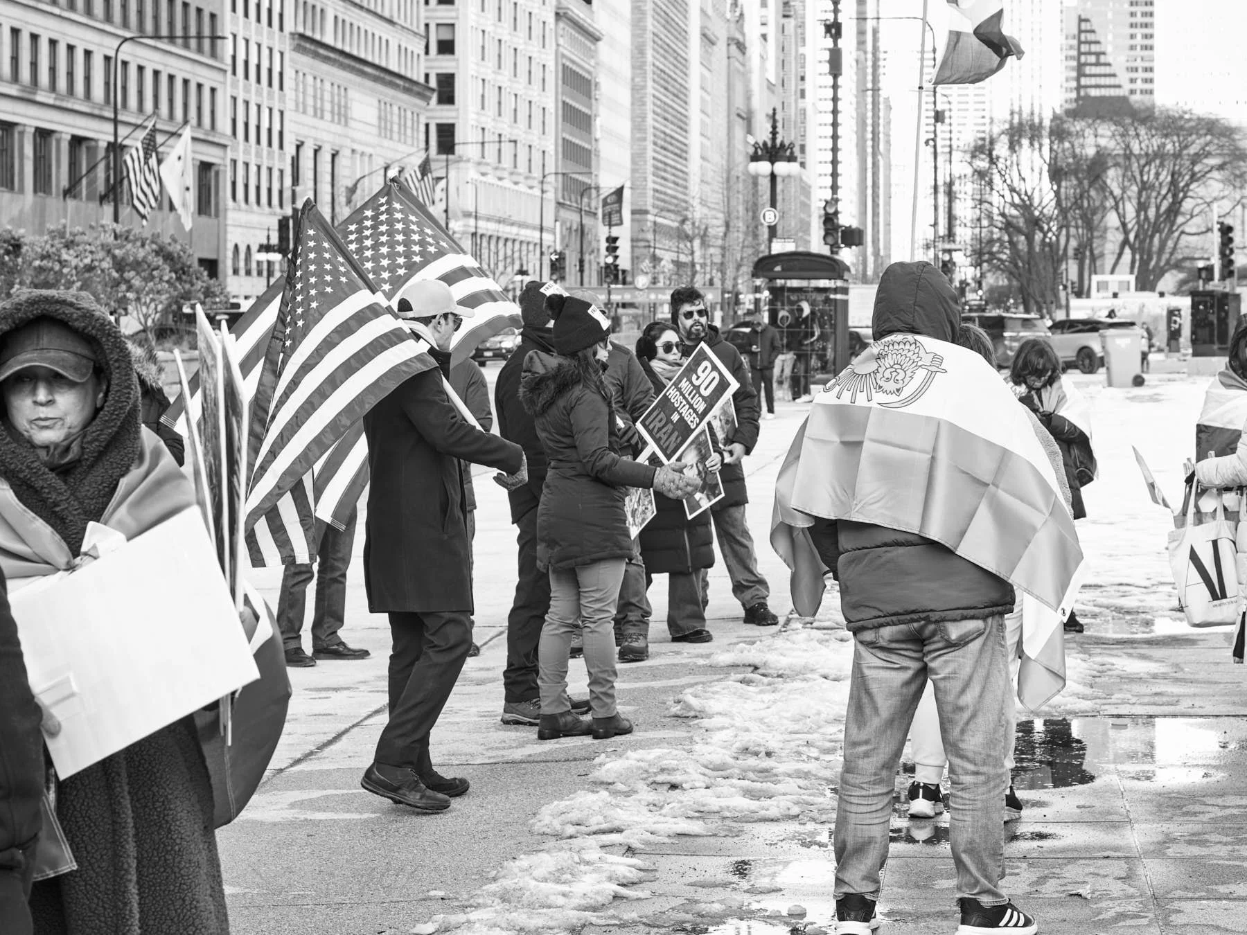 After warming up in the Michigan Avenue Apple store, I headed outside to catch the bus home. I thought I saw the Iranians arriving across the river from Trump Tower. I didn’t bother heading toward Wacker. All I wanted was warmth.