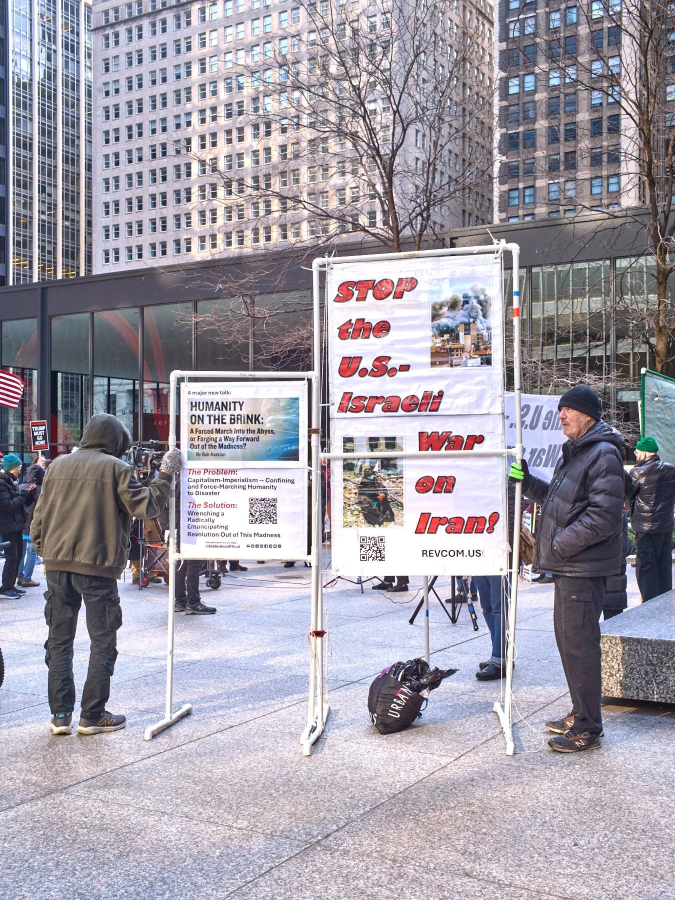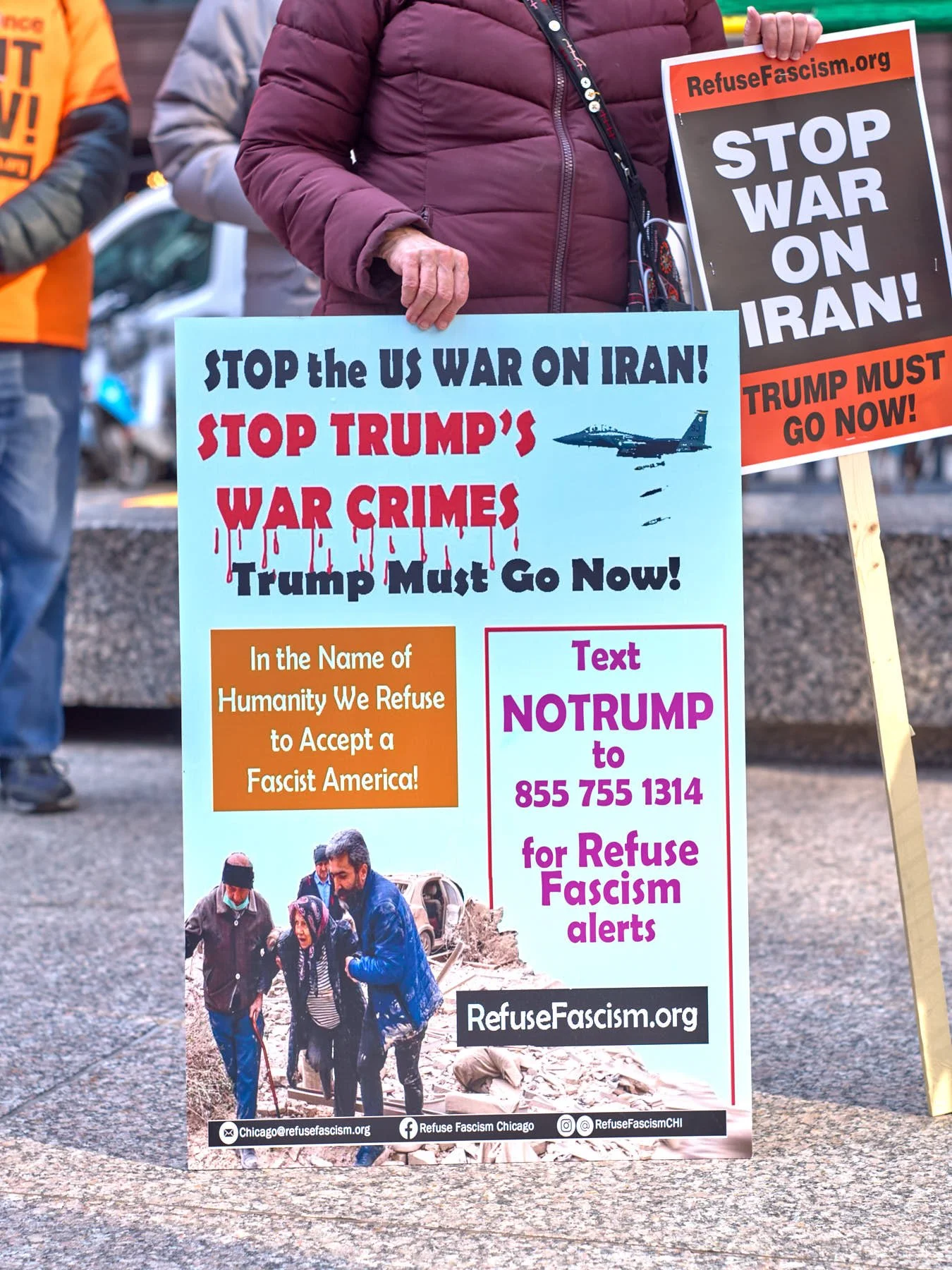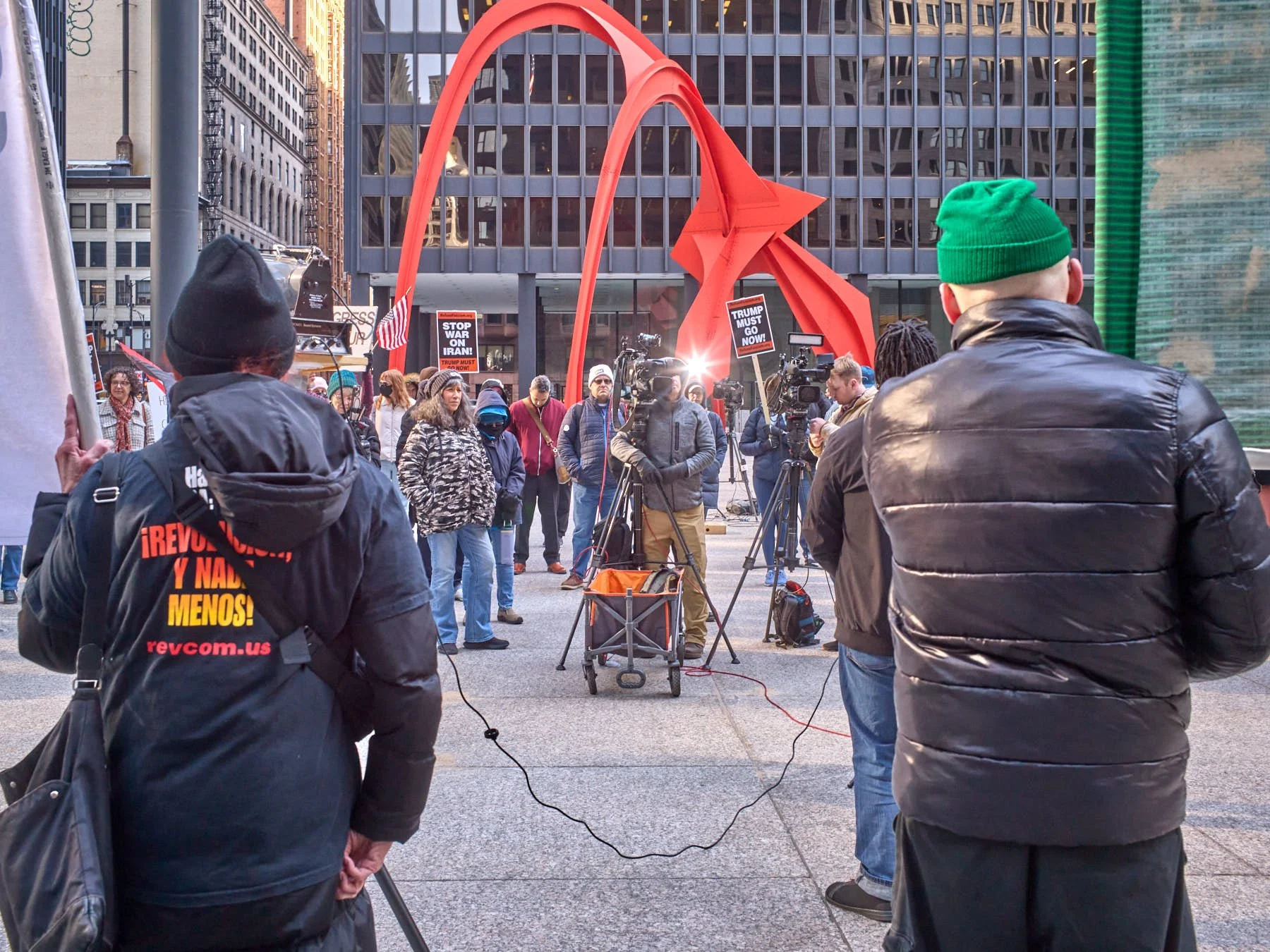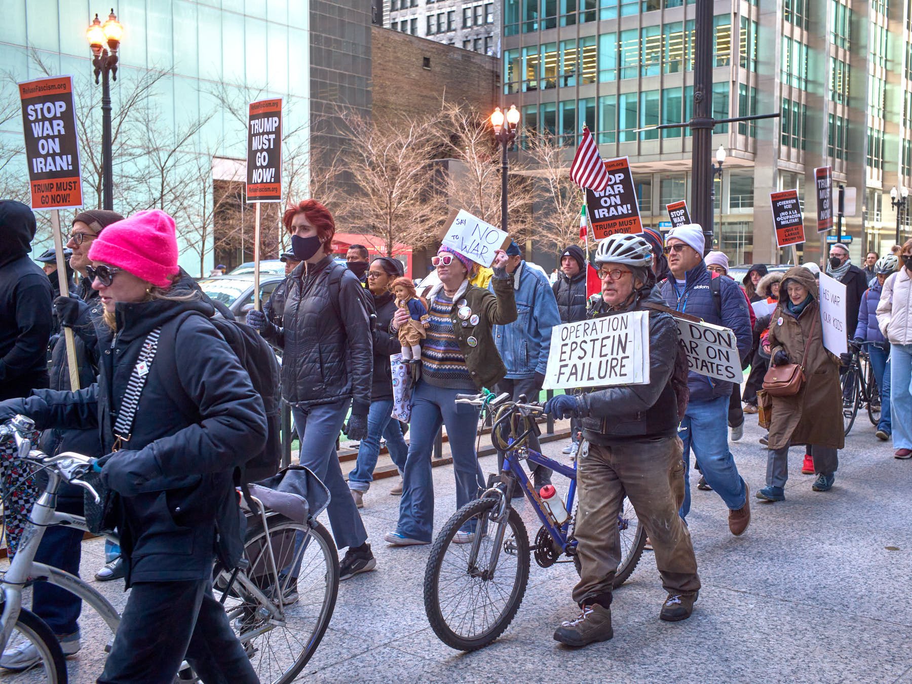 Today’s late afternoon demonstration against Donald J. Trump’s war on Iran may have been the most effective demonstration in the history of all mankind. I left the demonstrators on Upper Wacker, across the river from Trump Tower, at 4:30 PM. Within 90 minutes, Trump had called off his plans to bomb Iran back into the Stone Age by destroying all its power plants and major bridges. He had planned to commit genocide by wiping out an entire civilization. Just over 100 demonstrators changed the course of history by demanding peace as they stood in Chicago’s Federal Plaza, and then marched within eyesight of that incarnation of evil that juts upward above the river where the Chicago Sun-Times was once printed each day.