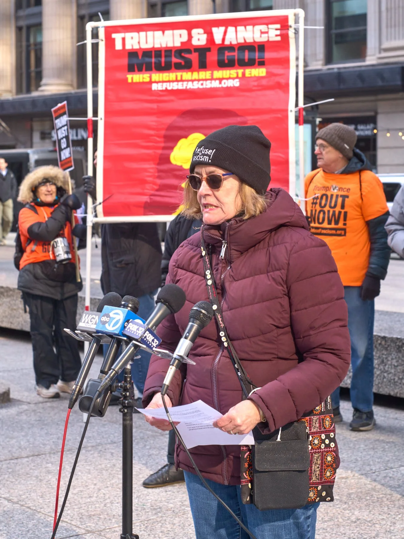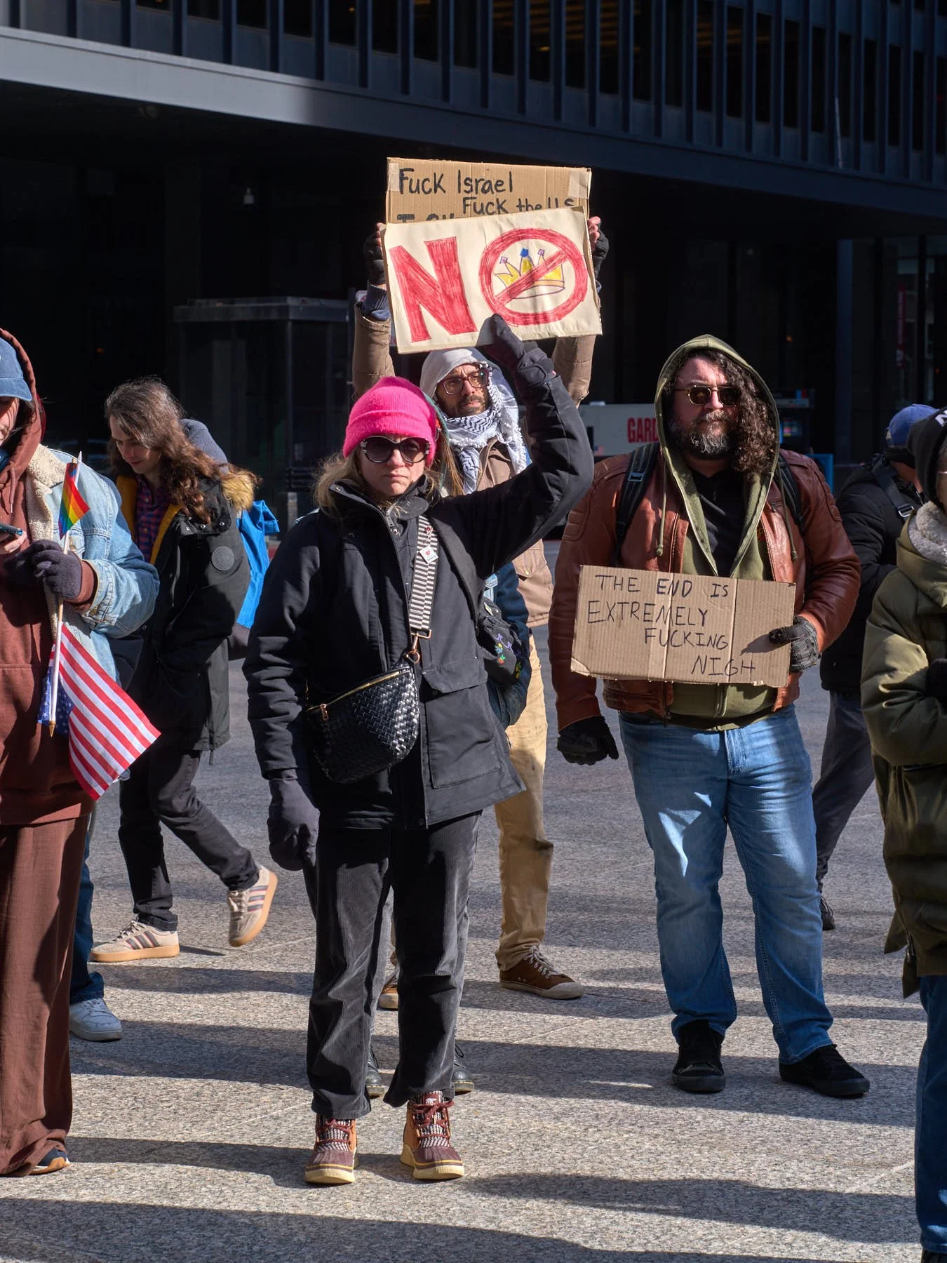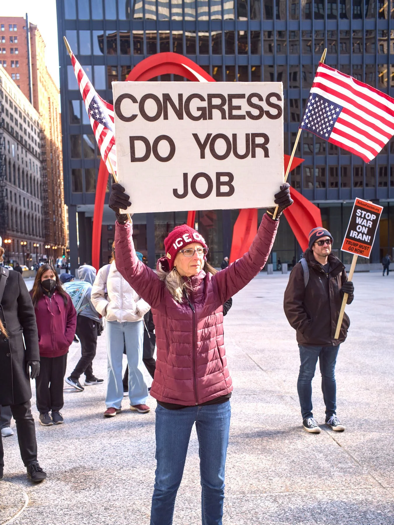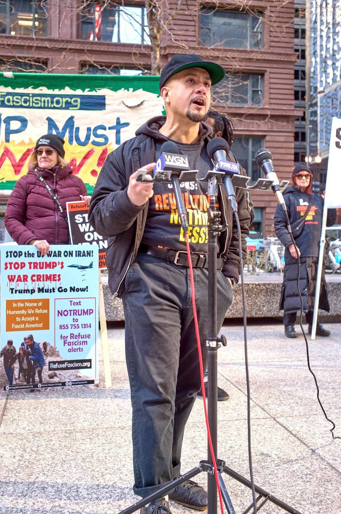 Today’s late afternoon demonstration against Donald J. Trump’s war on Iran may have been the most effective demonstration in the history of all mankind. I left the demonstrators on Upper Wacker, across the river from Trump Tower, at 4:30 PM. Within 90 minutes, Trump had called off his plans to bomb Iran back into the Stone Age by destroying all its power plants and major bridges. He had planned to commit genocide by wiping out an entire civilization. Just over 100 demonstrators changed the course of history by demanding peace as they stood in Chicago’s Federal Plaza, and then marched within eyesight of that incarnation of evil that juts upward above the river where the Chicago Sun-Times was once printed each day.