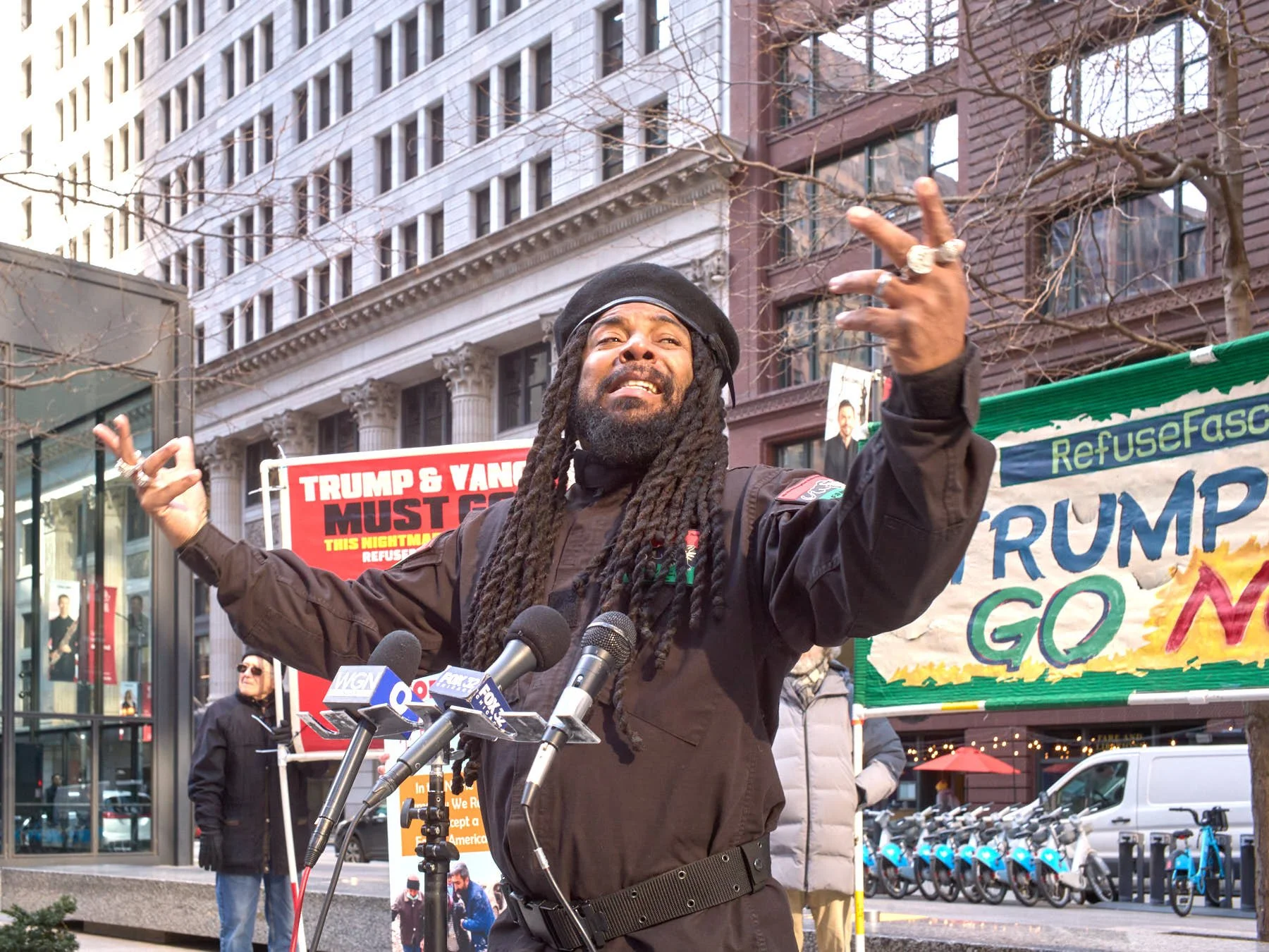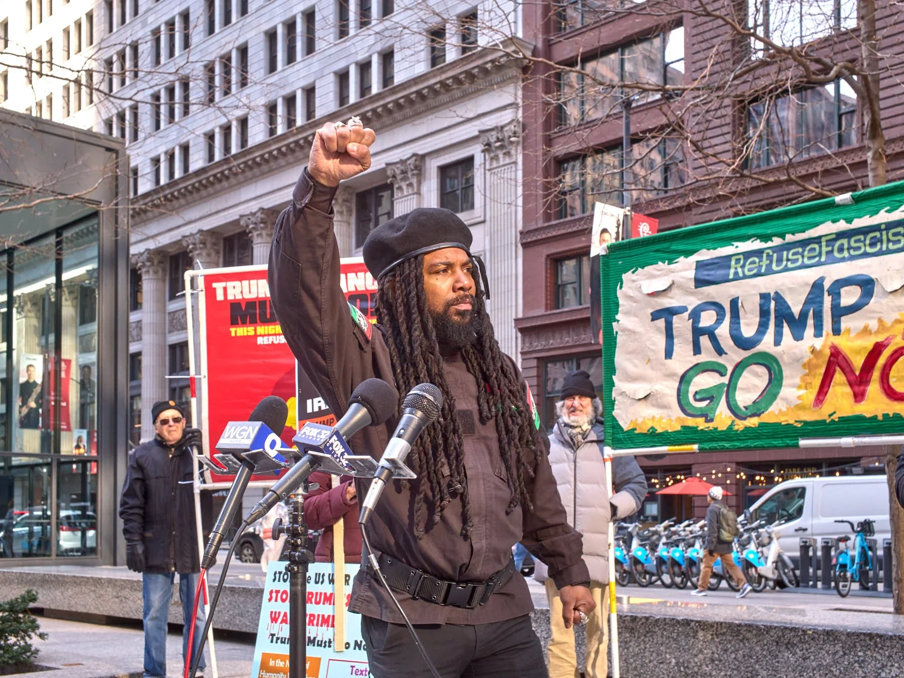 The demonstration adhered to the tried-and-true formula. Several people on the Far Left spoke out against Trump, often giving impassioned speeches. Recalling the halcyon days of the Sixties, a member of Chicago’s Black Panther party spoke. Of course, he called for Black Power, but then proceeded to call for a dozen other powers, including White Power at the end of his list, with a good-natured smile and chuckle added for good measure.
